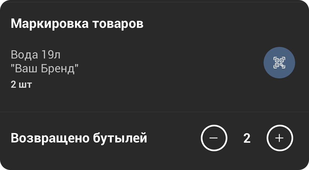 В курьерском приложении реализована последняя миля маркировки: водитель с помощью смартфона сканирует код бутыли, информация отправляется в ОФД и «Честный Знак», а клиент получает чек с маркировочным кодом конкретной бутыли.