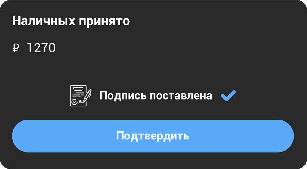 Приложение заменяет терминал, считыватель кодов маркировки, бумажные чеки и маршрутные листы. Клиенты могут оплатить свой заказ онлайн и подтвердить доставку электронной подписью в смартфоне курьера.
