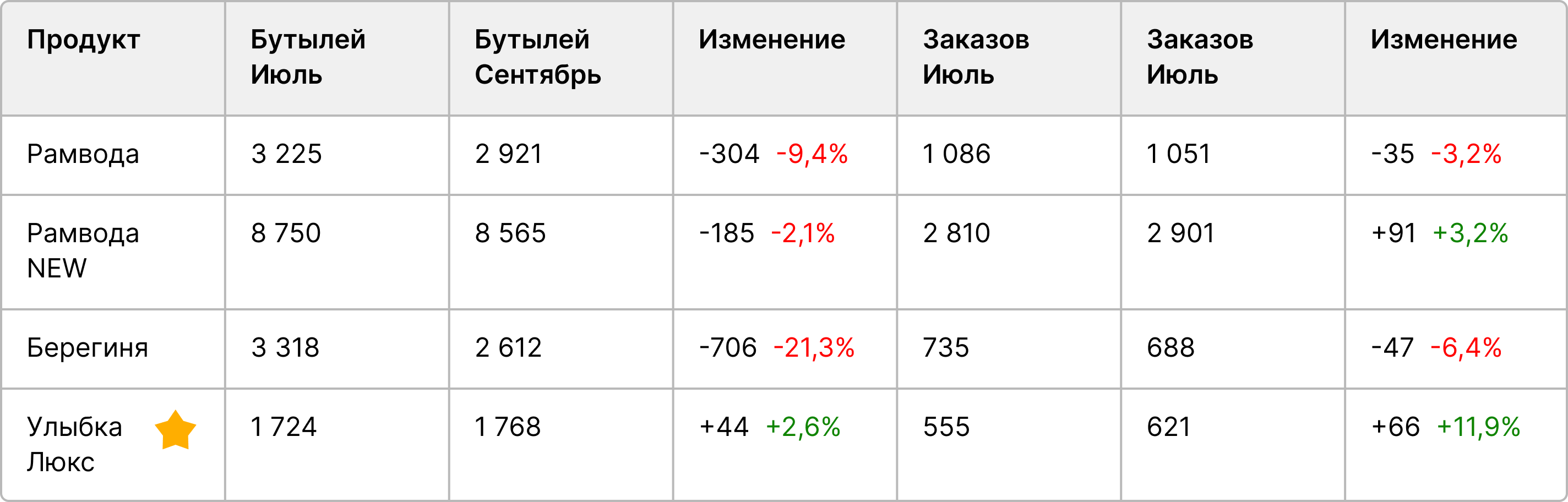 Показатели «Улыбка Люкс»: июль vs сентябрь